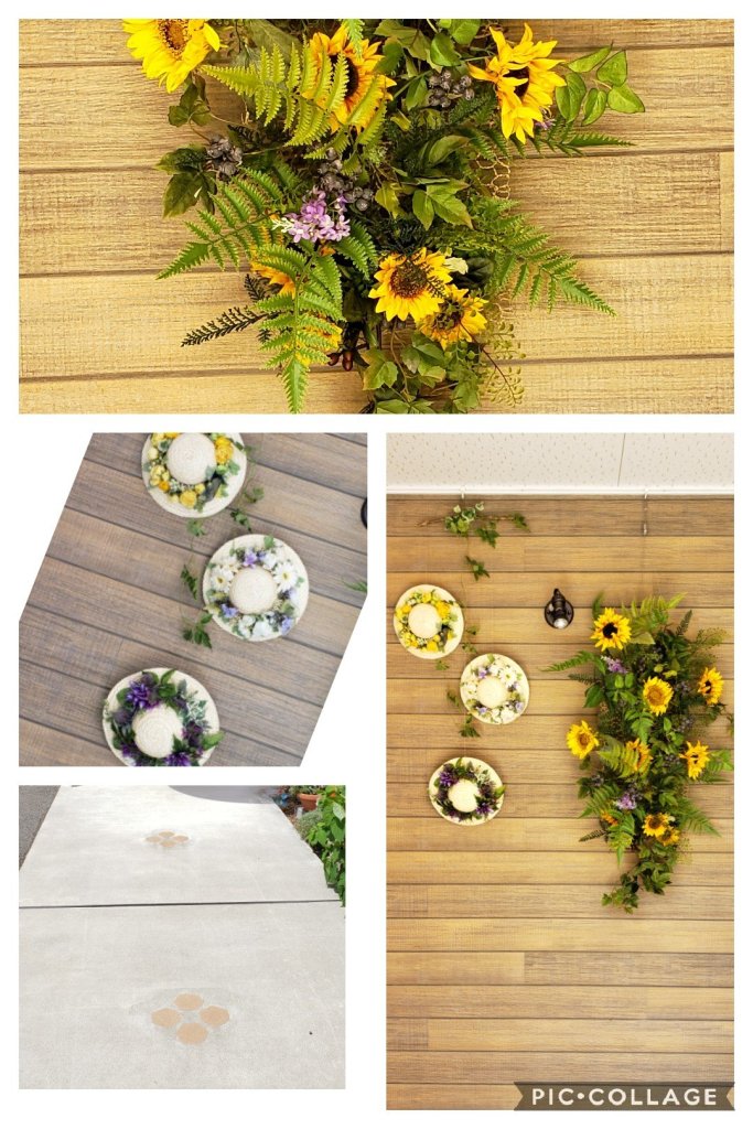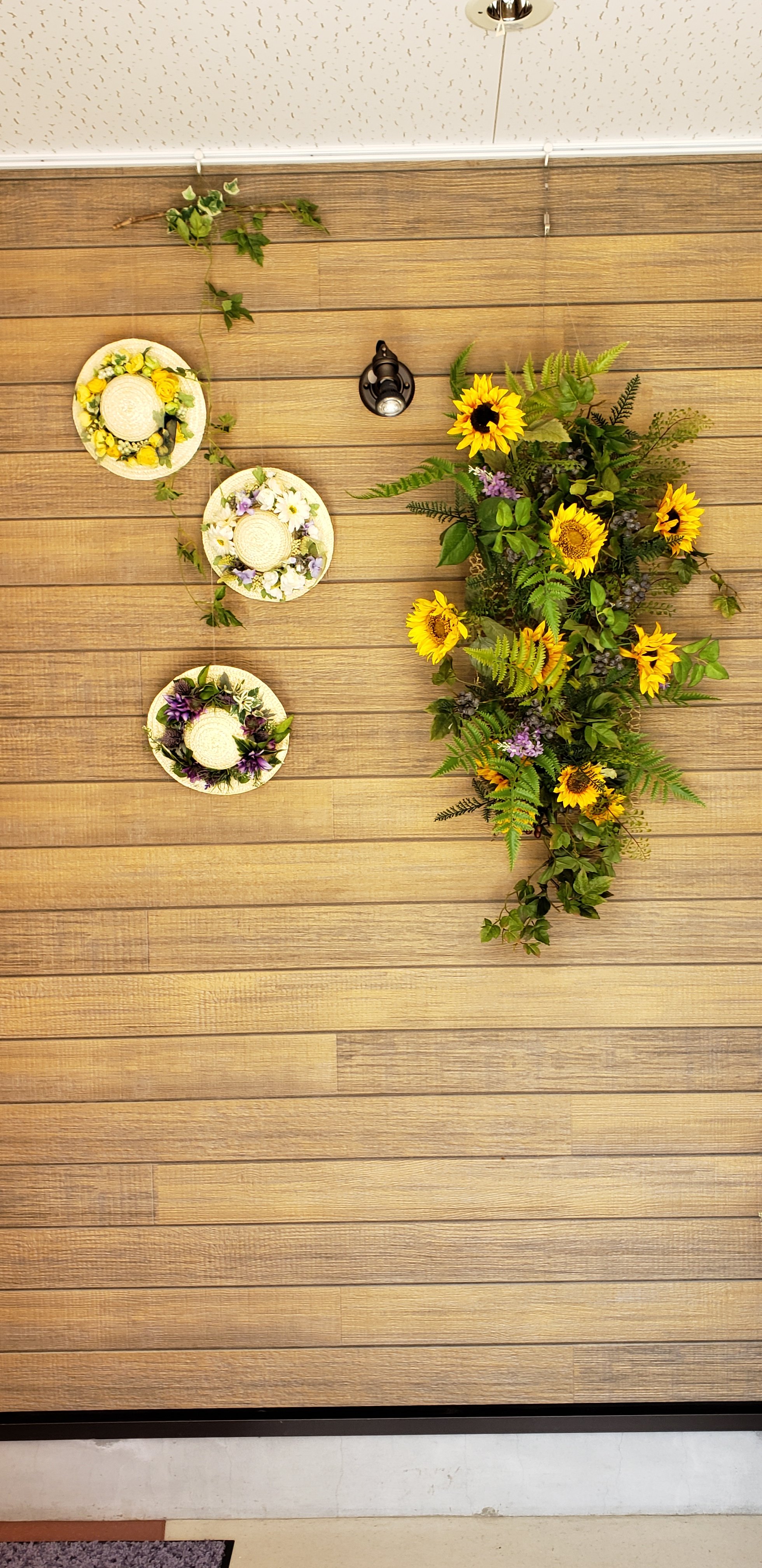 今回は、こんなときだからこそ、元気に陽気になってもらいたいと思って、小さなひまわりをたくさん使ったディスプレイになっています。