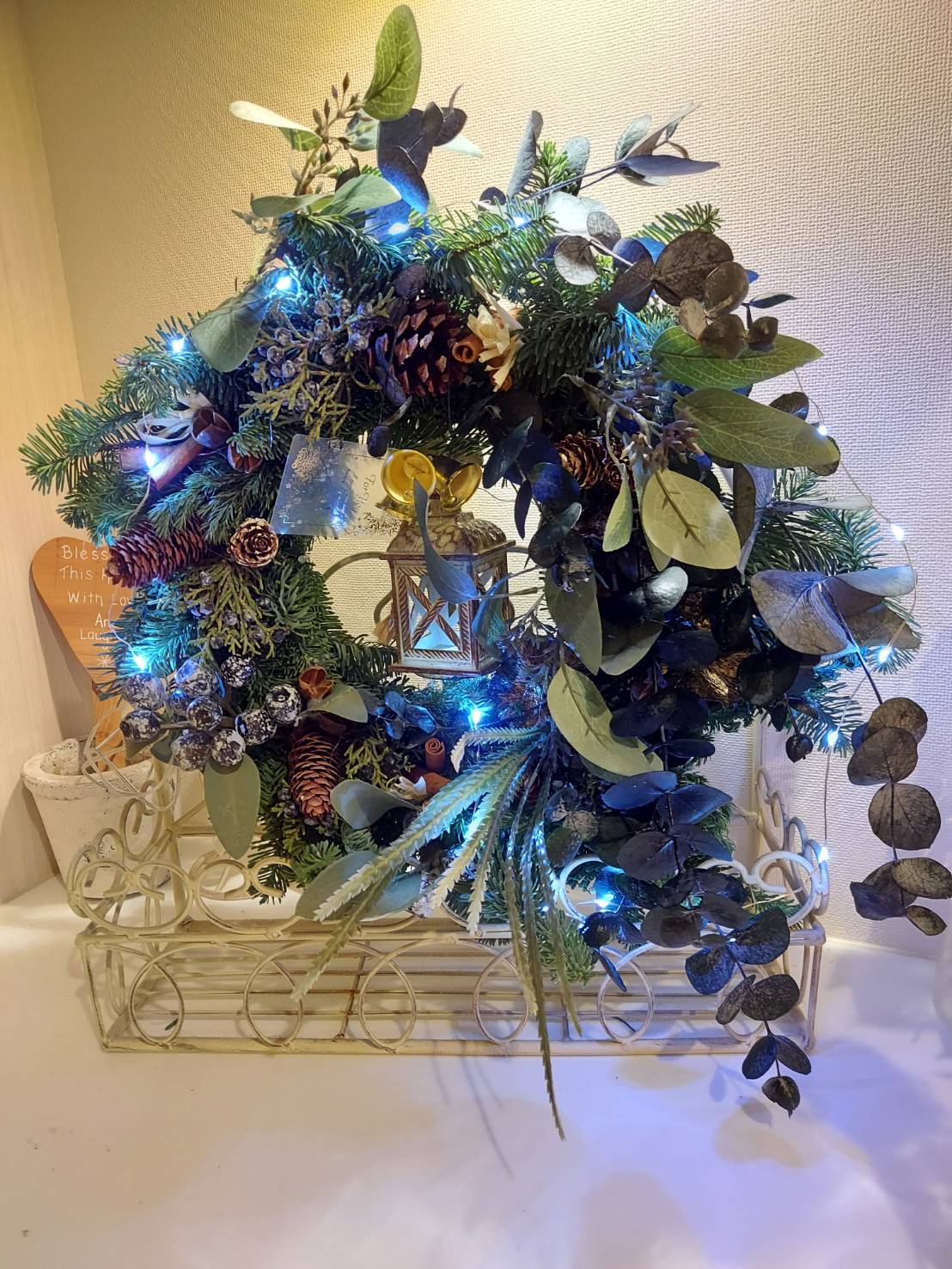 スワッグとは、リースと同じように、壁やドアなどに飾るオシャレなインテリアリースでクリスマス以外にも一年中色んなお花を使い飾れるリースとして、ここ数年、ワークショップでもご希望される方が増えてきました。
