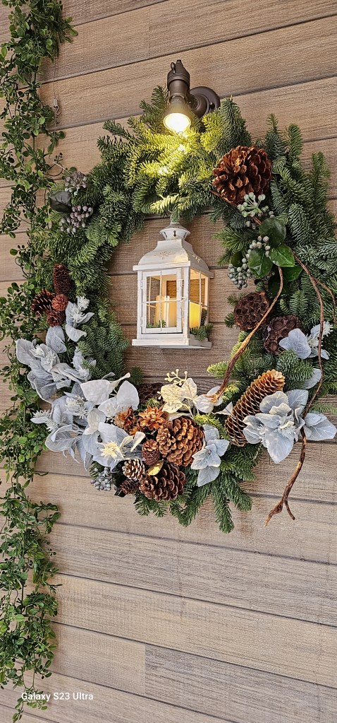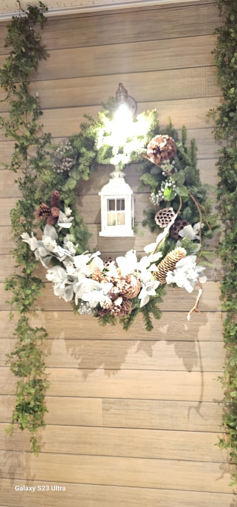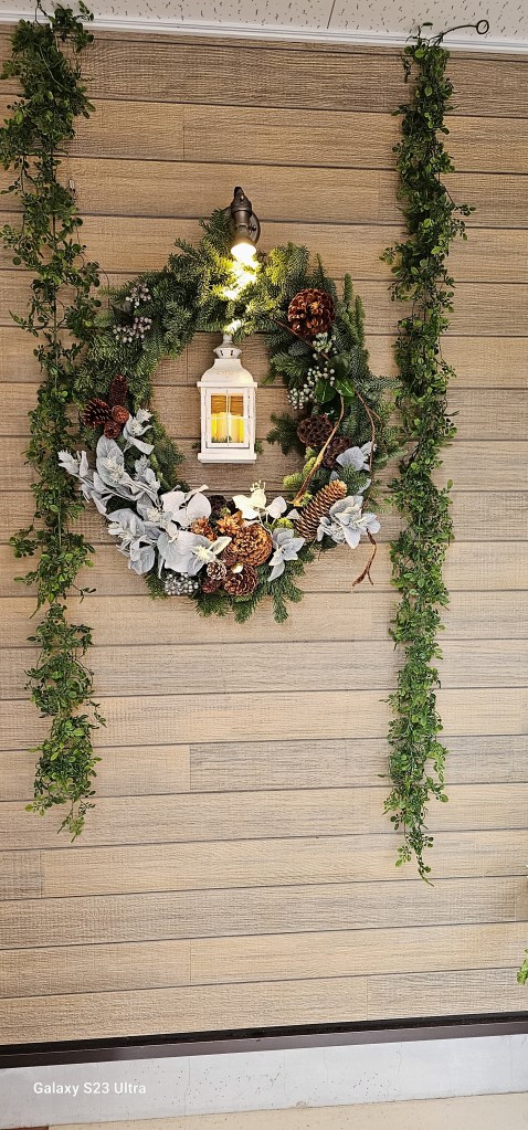 今年はランタンを使いナチュラルリースにしてみました。けっこうお店の奥さまは気に入ってくれたので良かったです。セッティングしてると中にお客様が入ってくるのですが、いつも楽しみにしてますと声を掛けてくれる方やディスプレーを楽しみにしてるんですと言ってくださるとやってて良かったと思います。