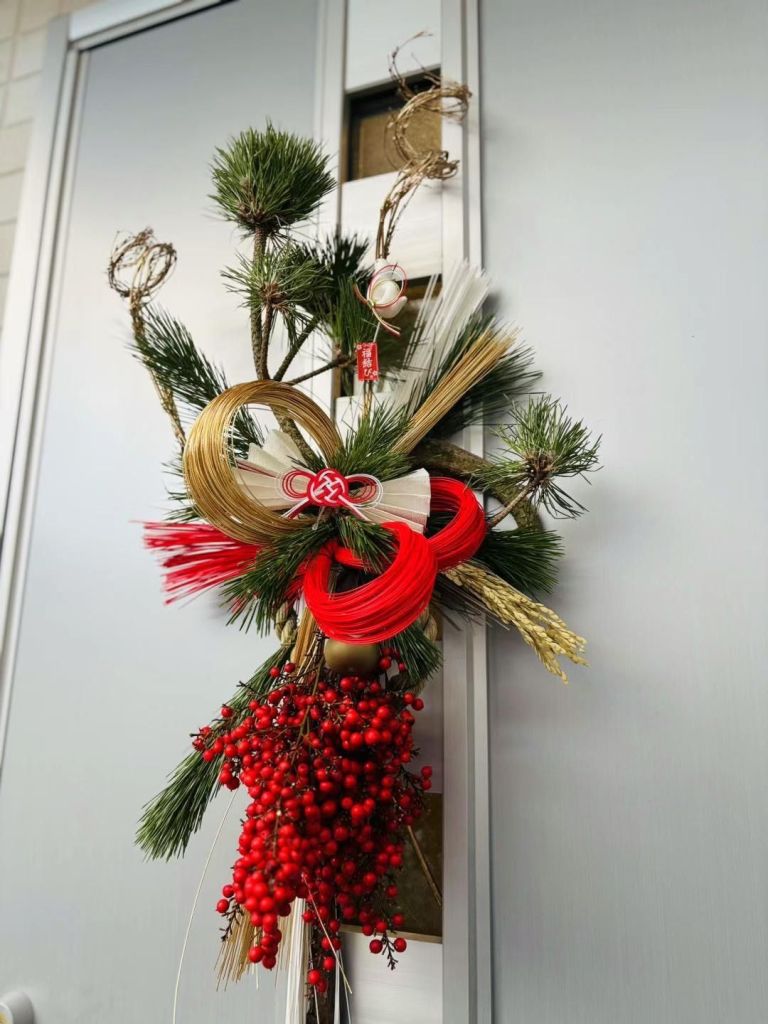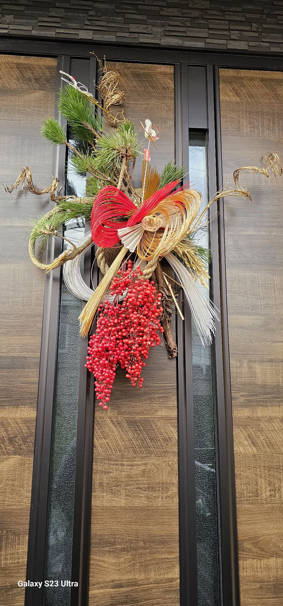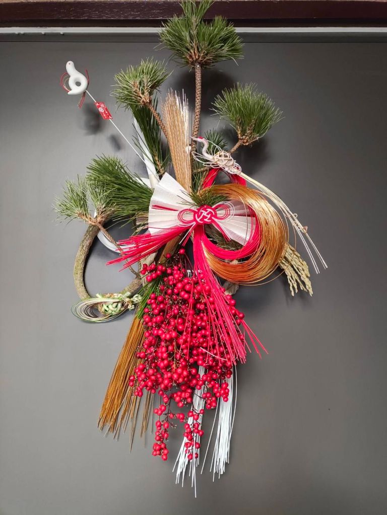 巳年の2025は 龍にも見える松(お菊の松)と若松・根引き松・金の柳雲龍型・南天は・水引(赤(朱色)・白・金(シャンパンゴールド)その他お正月グッツを使い作りました。余った南天は必要な方にお渡ししてます。今回も何人かほしい方がいたので差し上げました。受験生や厄落しなど…