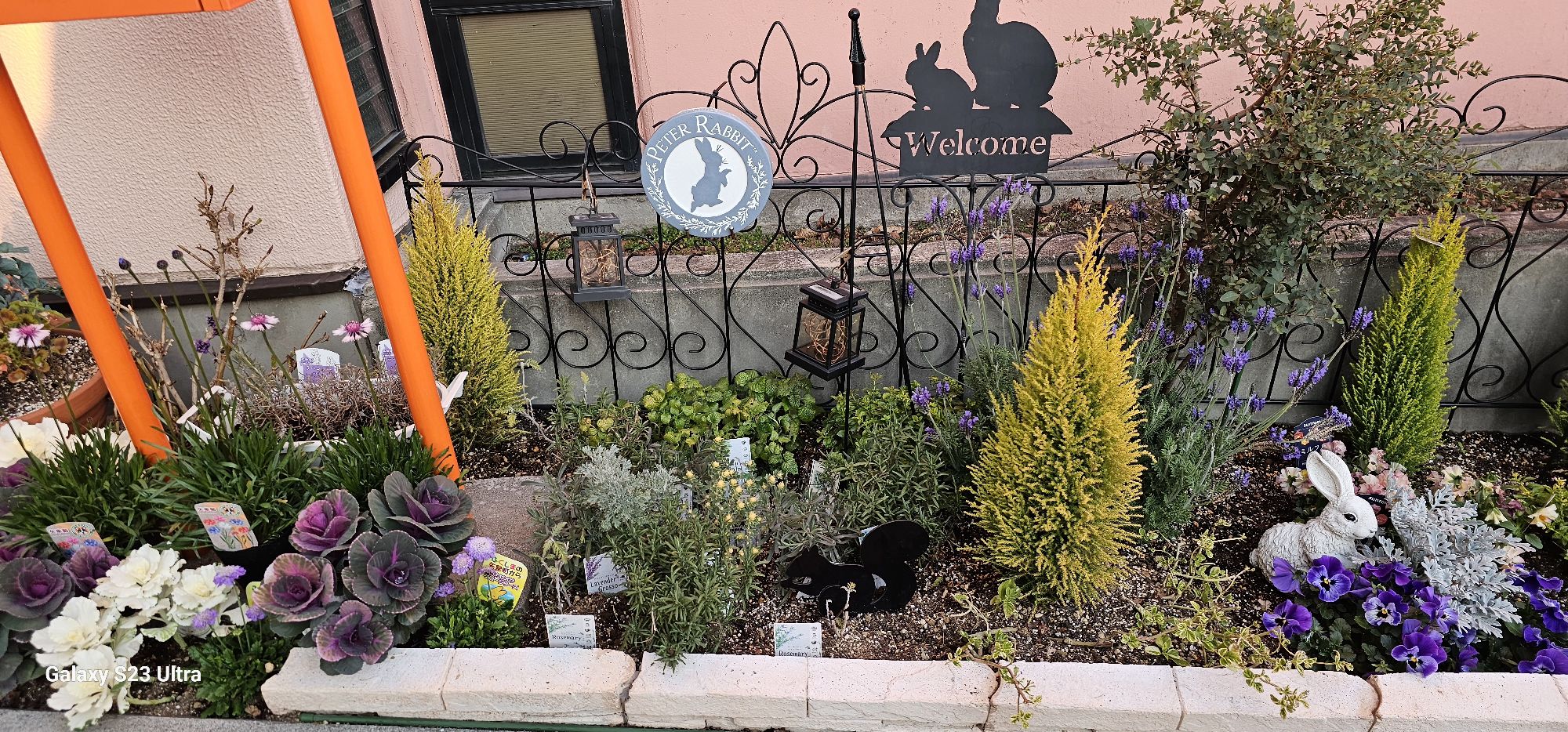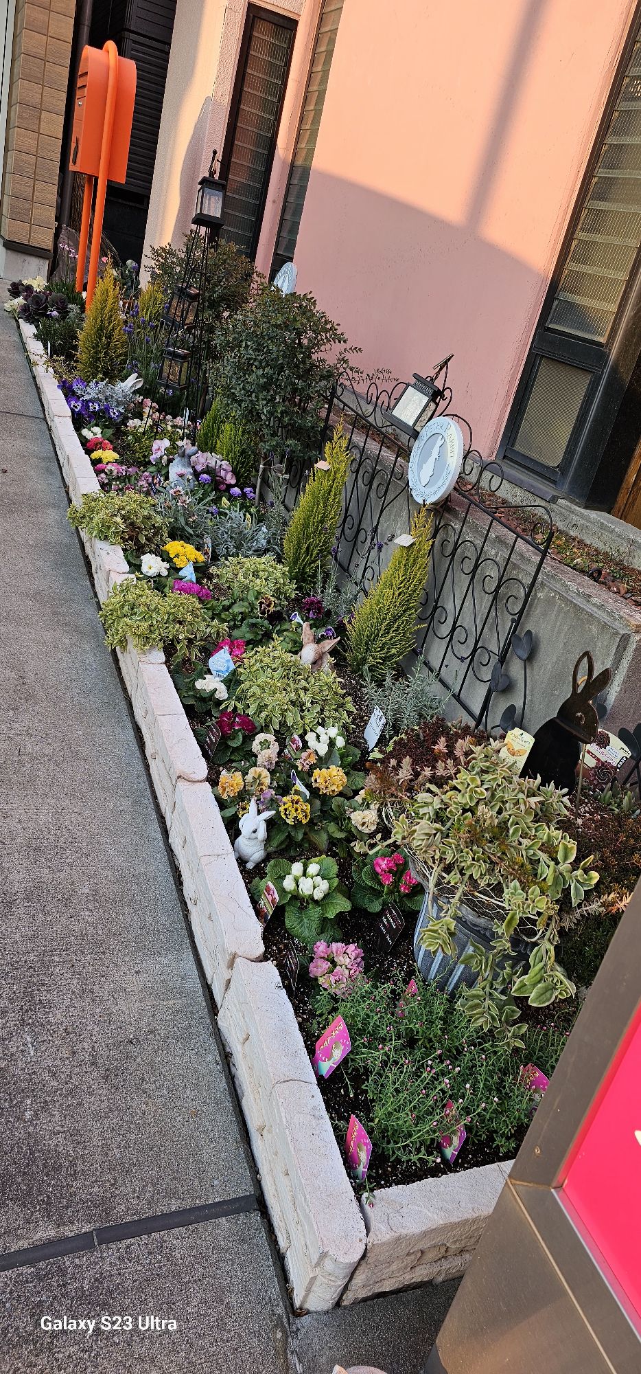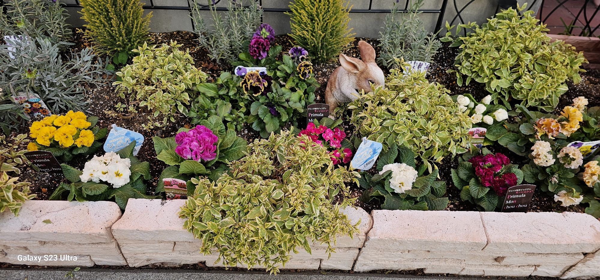 昨年植えたパンジーは八重と普通のパンジーで、まだ元気だったので、ジュリアンは八重と普通のお花と矢車草と花かんざしを植えてみました。乾燥が続いてるのでそれに耐えられるお花を選びました。