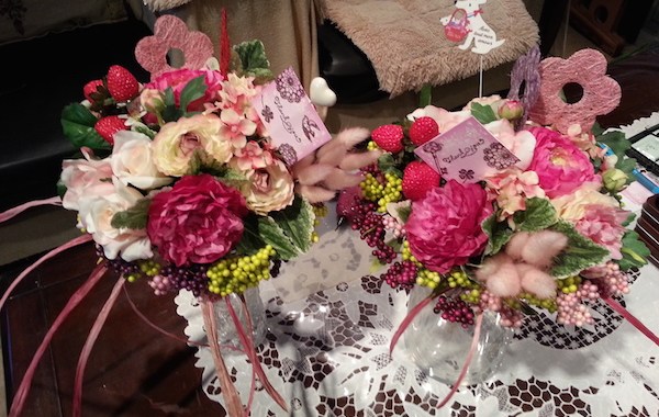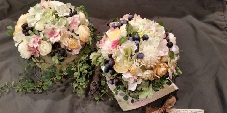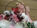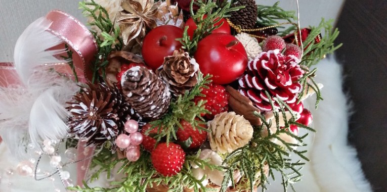 実例:ワークショップ LEDキャンドルをつかったアレンジメント 生徒さん作品 LEDキャンドルを利用したアーティフィシャルフラワーによるアレンジメントを生徒さんに楽しんでもらいました。 LEDなので、お花も電球の熱で傷まないので安心です。