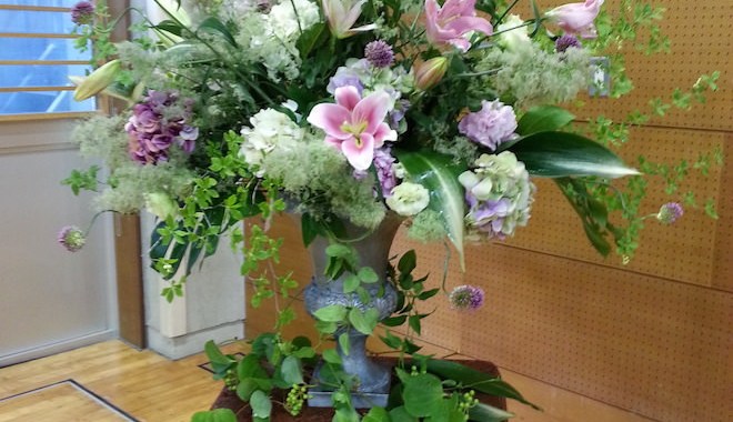 お知り合いのお子さんが通われる学校の卒業式式典の会場となる体育館を飾る装花を担当させていただきました。