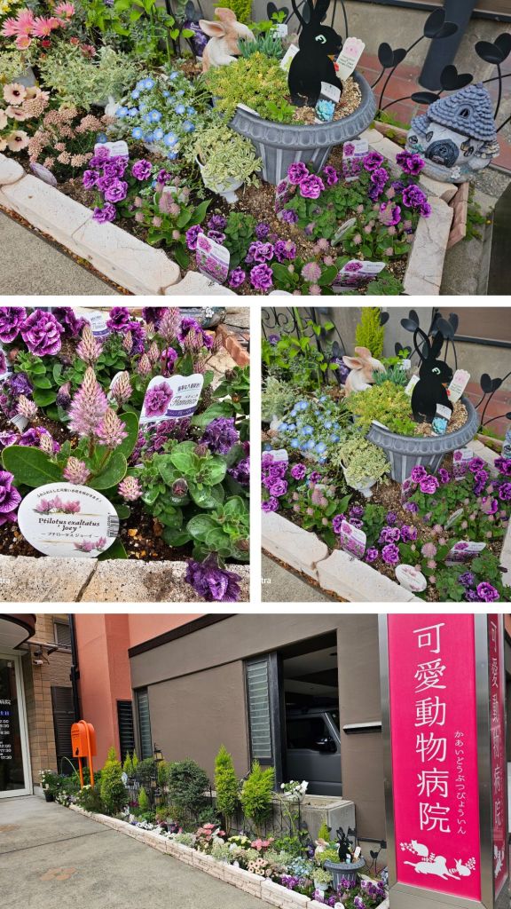 既に夏日も記録するなど、季節の変化は早いものです。恒例の河合動物病院さんのエントランスや植栽も、夏のものに変える頃になりました。
